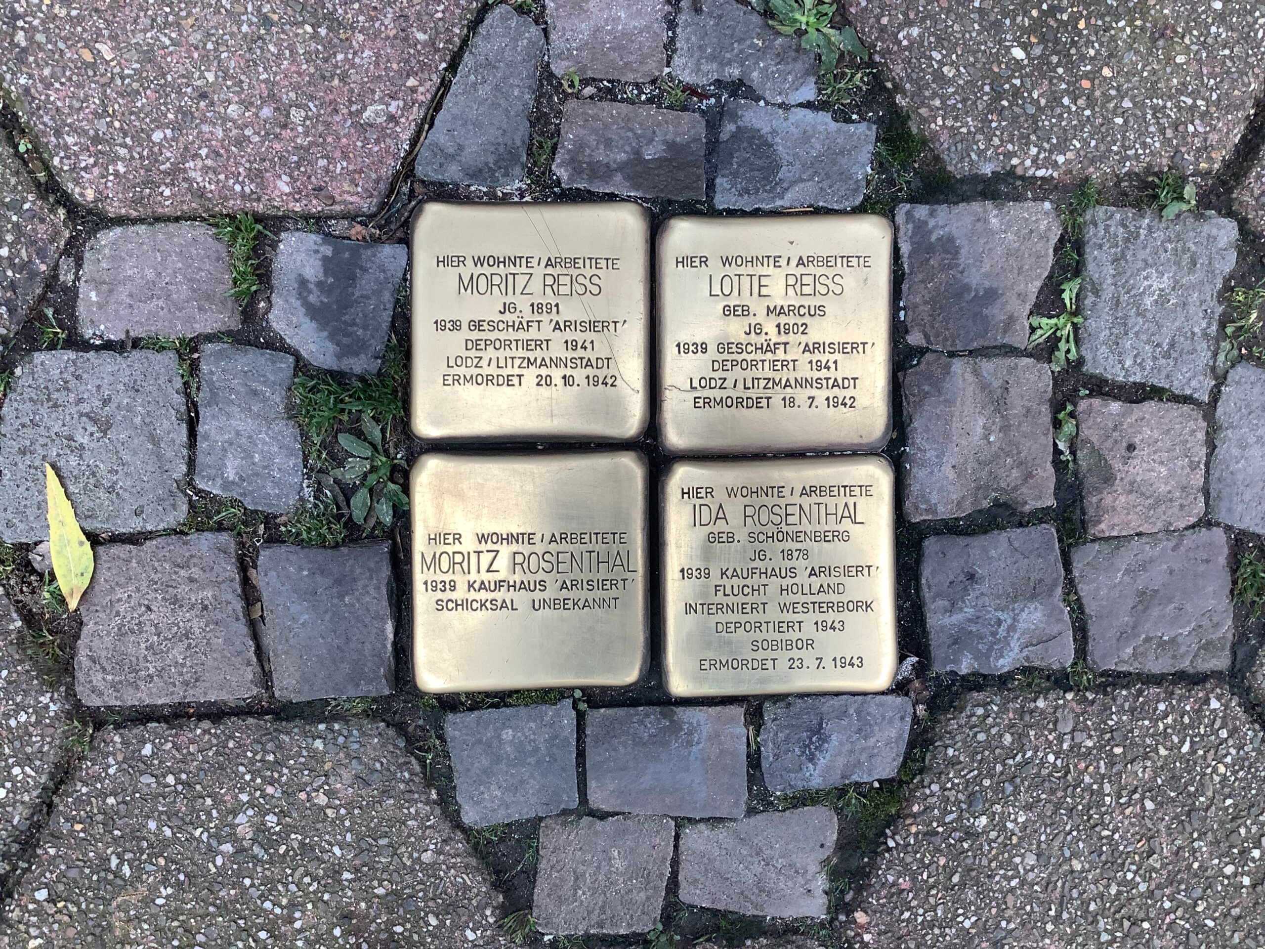 Die Stolpersteine sind kleine Messingplatten in Gehwegen, gestaltet vom Künstler Gunter Demnig. Sie erinnern dort, wo Menschen einmal gewohnt haben, an Bürgerinnen und Bürger, die von den Nationalsozialisten ermordet, vertrieben oder verfolgt wurden – etwa weil sie jüdisch waren, politisch andersdenkend oder anderen Gruppen angehörten, die verfolgt wurden. Sie sind Teil eines dezentralen, über ganz Europa verteilten Mahnmals.